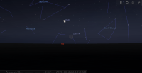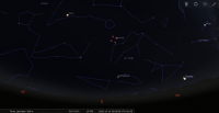 Devant le Sagittaire (Sgr) ; longitude écliptique 23e CAP, il se couche à 18h59 pour notre localisation, soit 1 heure et 49 minutes après le Soleil.