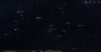 – Aux alentours de 5h, la petite planète (6) Hebe est à 1,5° au Nord de la nébuleuse de l’Aigle