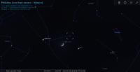 Devant le Verseau (Aqr) ; longitude écliptique 6e POI, il se couche à 18h57 pour notre localisation, soit 43 minutes après le Soleil.