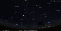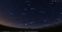 - A 8h19, la Lune est conjointe à Pluton dans le plan équatorial, la planète naine 2°12’ au Nord ; élongation solaire de Pluton 79° Ouest.