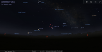 Avant le jour, le gros croissant de Lune, qui se lève à 4h42 pour notre localisation, signale la position de Pluton (invisible, lever 4h23)