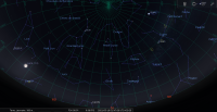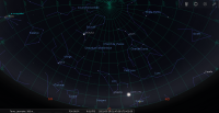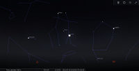 - A 0h02, la Lune est conjointe à Vénus dans le plan équatorial, la planète 0°43’ au Nord ; élongation solaire de la Lune 12° Est.