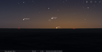 les deux astres sont alors à tout juste 2° de hauteur environ au Nord-ouest, ce qui rend l’observation difficile