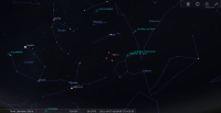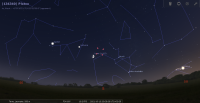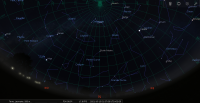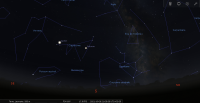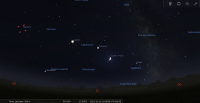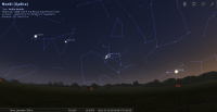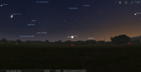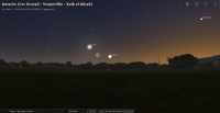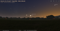devant la Vierge (Vir) ; longitude écliptique 2e SCO, il se couche à 20h06 pour notre localisation, soit 47 minutes après le Soleil.