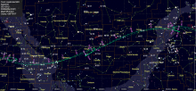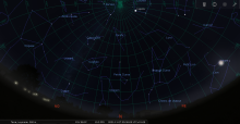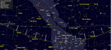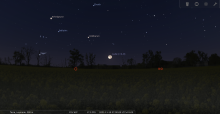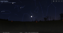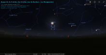 - A 23h45, la Lune atteint sa déclinaison maximale : +26°20’31" (Nord) par rapport au plan de l’équateur céleste ;