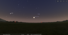A son lever à l’Est-nord-est, peu avant 19h pour notre localisation, la Lune se trouve juste sous l’étoile ;