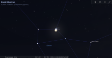 - A 13h39, la Lune est conjointe à Elnath dans le plan équatorial, l’étoile (beta Taureau) 3°29’ au Nord.