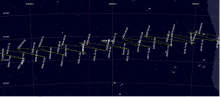 Elle passe de la constellation du Taureau (Tau) à celle du Lion (Leo)
