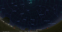 - A 1h43, la Lune est conjointe à Neptune dans le plan équatorial, la planète 4°14’ au Nord ; élongation solaire de la Lune 89° Est.