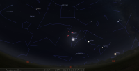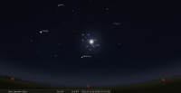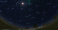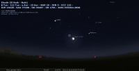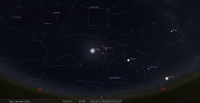 - A 6h53, la Lune est conjointe à Uranus dans le plan équatorial, la planète 1°33’ au Nord ; élongation solaire de la Lune 137° Est.
