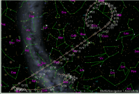 Elle passe de la constellation du Verseau (Aqr) à celle du Taureau (Tau)