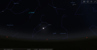 pour notre localisation : à 8° de hauteur, azimut 104°, alors que le Soleil est à 5° sous l’horizon.