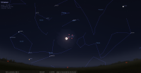 – A 14h46, la Lune est conjointe à Mars dans le plan équatorial, Δ +2°28’ ; élongation solaire de la Lune 144° Ouest