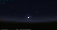 Au cours de la nuit du 9 au 10, les Pléiades se lèvent au coucher du Soleil, à 17h35 pour notre localisation et la Lune à 17h54.