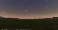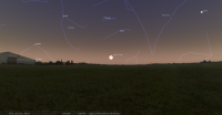 Pour notre localisation, ce soir aux alentours de 20h00, les deux astres sont à l’Est, à 25° de hauteur environ.
