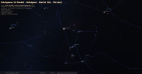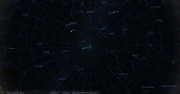 – Ci-contre, sa position dans le plan équatorial devant les constellations, jour après jour du 1er juillet 2022, 0h TU (10e CAN) au 20 février 2023, 0h TU (2e POI)