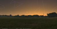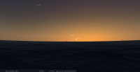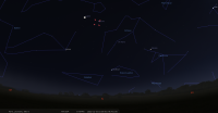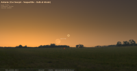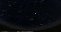 pour notre localisation, il est alors à l’Est-sud-est (azimut 132°), à 3° de hauteur, alors que le Soleil est à 4° sous l’horizon.