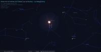 - A 7h30, la Lune est conjointe à Spica dans le plan écliptique, l’étoile 3°10’ au Sud.