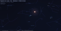 – Ci-contre, sa position dans le plan équatorial devant les constellations, jour après jour du 1er décembre 2022, 0h TU (9e SAG) au 24 mai 2023, 0h TU (3e GEM)