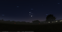 les deux astres sont alors à l’Ouest-nord-ouest, à 9° de hauteur et la portion éclairée de la Lune est de 36%.