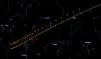 - A 1h11, l’astéroïde (141) Lumen est à l’opposition du Soleil dans le plan équatorial