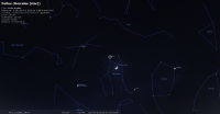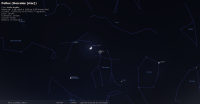 Ce soir, pour notre localisation, Pollux culmine à 21h06, à plus de 70° de hauteur, la Lune à 21h27.