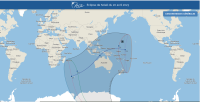 dont la bande de centralité ne passe quasiment que sur des étendues maritimes : l’océan Indien, la mer de Timor, puis l’océan Pacifique.