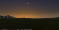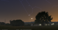 Les Pléiades se lèvent à 2h28 et le croissant de vieille Lune à 2h32 pour notre localisation.