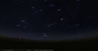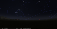 Pour notre localisation, il est au Nord-Est (azimut 52°), à 1,5° de hauteur, alors que le Soleil est à 6° sous l’horizon.