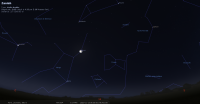 - A 10h27, la Lune est conjointe à Vénus dans le plan équatorial, la planète 0°53’ au Sud ; élongation solaire de Vénus 45° Ouest