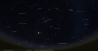 les deux astres sont alors à sont alors à l’Est-sud-est à 30° de hauteur environ et la portion éclairée de la Lune est de 24%.