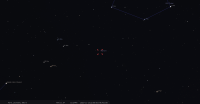– Ci-contre, sa position dans le plan équatorial devant les constellations, jour après jour du 1er septembre 2023, 0h TU (9e VIE) au 14 février 2024 , 0h TU (25e VER)