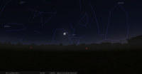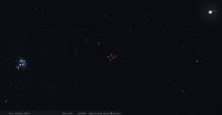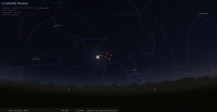 - A 8h35, la Lune est conjointe à Pluton dans le plan équatorial, la planète 2°30’ au Nord ; élongation solaire de Pluton 62° Est