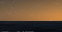 - Aux alentours de 1h00 (0h00 UTC), le croissant primeur de cette lunaison est théoriquement observable avec un instrument au Sud-est du Pacifique peu après le coucher du Soleil