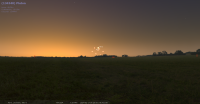 L’ensemble à la tombée de la nuit ; les Pléiades se couchent le 17 février à 2h43 et la Lune à 2h53