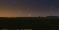 - A 0h58, la Lune arrive devant la constellation de la Baleine (Cet) ; longitude 7°15’ (8e BEL) ; latitude -0°46’, monte.