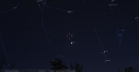 – A 20h00, la Lune est conjointe à Vénus dans le plan équatorial, la planète 0°23’ au Nord ; élongation solaire de Vénus 15° Ouest