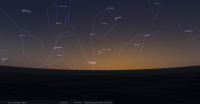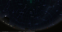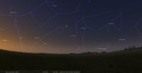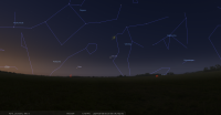 - Aux alentours de 21h40 (19h40 UTC), le croissant primeur de cette lunaison est théoriquement observable,