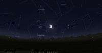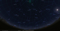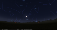 - A 7h12, la Lune arrive devant la constellation de la Vierge (Vir) ; longitude 173°36’ (24e VIE) ; latitude +1°40’, descend.