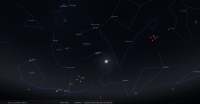 - A 14h42, la Lune est conjointe à Pluton dans le plan équatorial, la planète naine 1°30’ au Nord ; élongation solaire de Pluton 178° Ouest