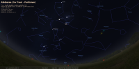déclinaison 0° ; ascension droite 0h 05m. Longitude écliptique 1°09’ (2e BEL), latitude -0°30’, monte