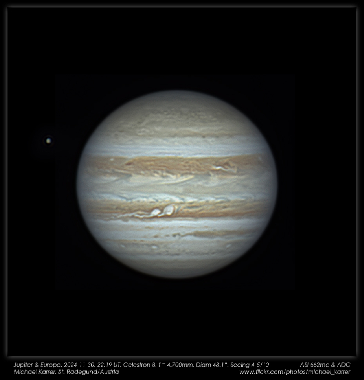 – Aux alentours de 19h00, suivez et le transit de Io et le passage de son ombre devant Jupiter