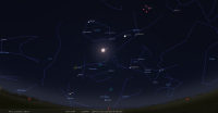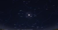 La nuit du 13 au 14, Uranus culmine à 22h46 et la Lune, passée à sa gauche et devant les Pléiades, à 23h19.