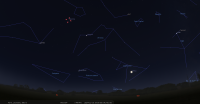 – A 15h26, la Lune arrive devant la constellation du Bélier (Ari) ; longitude 29°06’ (30e BEL) ; latitude +2°11’, monte.