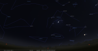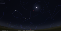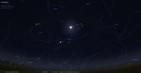 - A 18h45, la Lune est conjointe aux Pléiades dans le plan écliptique, l’amas ouvert (Messier 45) 0°07’ au Sud. Page spéciale PGJ