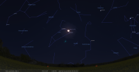 – A 19h35, la Lune arrive devant la constellation de la Balance (Lib) ; longitude 218°59’ (9e SCO) ; latitude -3°28’, descend.