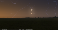 - A 4h56, la Lune est conjointe à Vénus dans le plan écliptique, la planète 2°05’ au Nord ; longitude 357°15’ (28e POI)