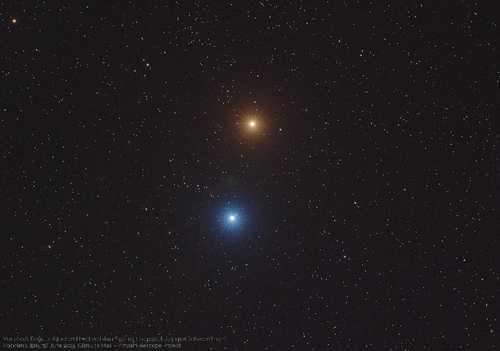 Le 25 juin, pour notre localisation, Elnath se lève à 4h50 et la Lune à 5h29.