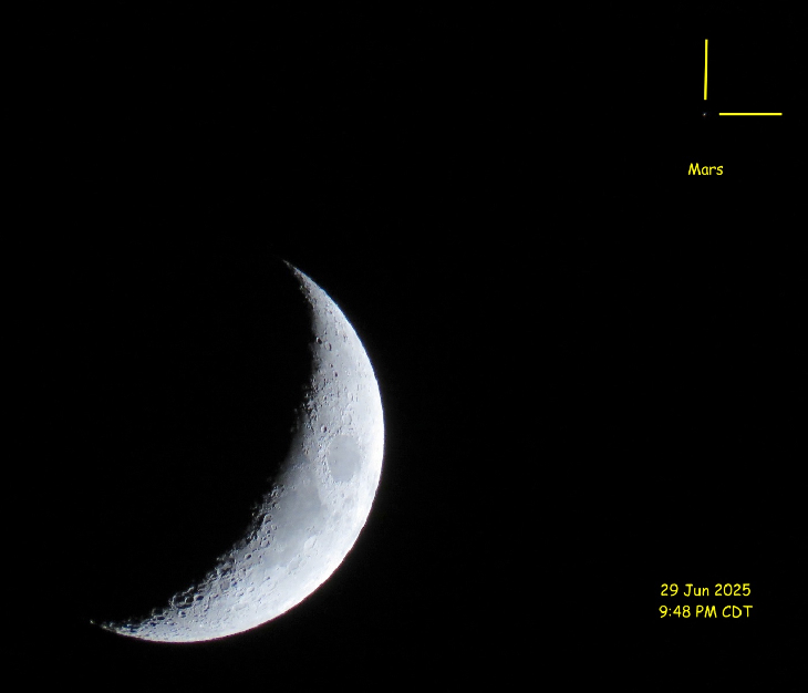 Conjonction Lune–Régulus–Mars les 1er et 29 juin 2025
