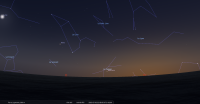 – A 6h02, la Lune arrive devant la constellation du Sagittaire (Sgr) ; longitude 267°27’ (28e SAG) ; latitude -5°00’, monte.